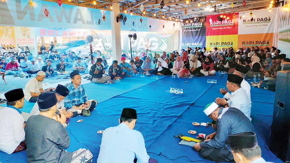 Syukuran dan doa bersama relawan Kopi Pagi atas kemenangan Prabowo-Gibran, Ahad, 18 Februari 2024.* (Foto: Baim/Suara Cirebon)