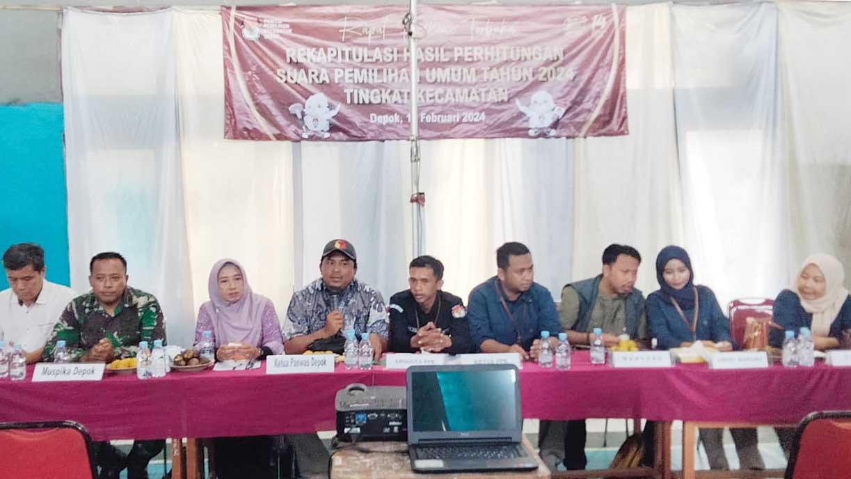 Pelaksanaan rapat pleno terbuka rekapitulasi suara Pemilu 2024 yang dilaksanakan PPK Depok, Kabupaten Cirebon, Minggu, 18 Februari 2024.* (Foto: Humas Panwaslu Depok)