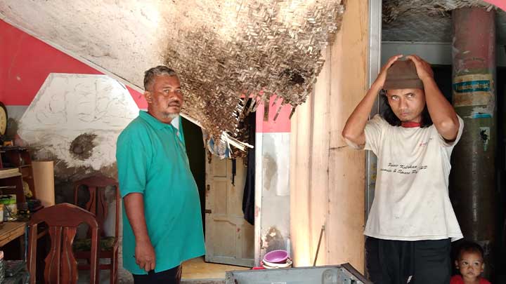 Sementara itu, pemilik rumah yang atapnya ambruk Junaedi mengatakan, sebelum kejadian sudah terlihat atapnya mengalami kebocoran karena hujannya besar dan disertai angin jadi atap rumah tidak kuat menahan derasnya air.