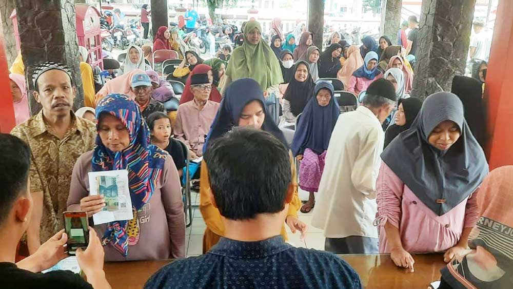 Proses pencairan bantuan sosial untuk warga Majalengka di kantor Pos setempat.* (Foto: Abdur Rakhman/Suara Cirebon)