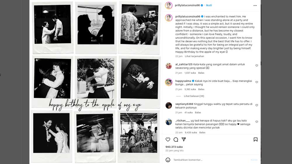 Tangkapan layar pesan Prilly Latuconsina di hari ulang tahun Reza Rahardian yang bikin netizen baper di akun Instagram pibadinya @prillylatuconsina96.*