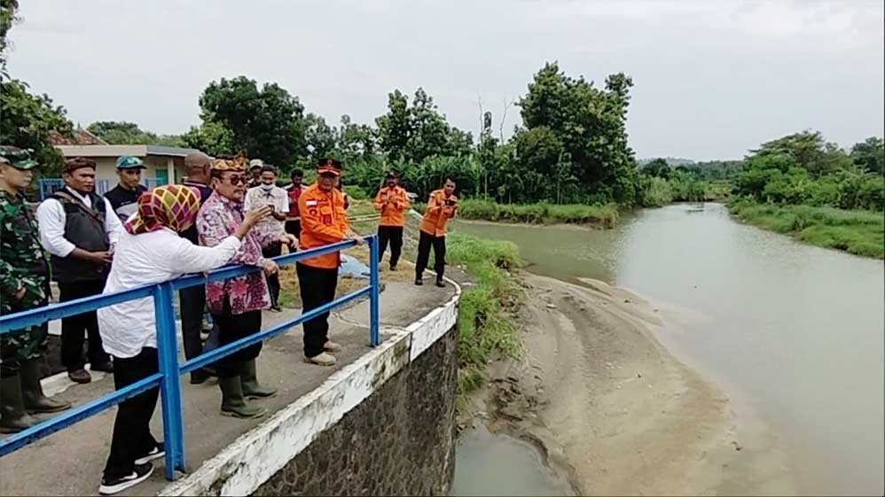 Bupati Cirebon, H Imron didampingi BPBD, Camat Waled serta kuwu saat meninjau Bendungan Ambit, di Kecawatan Waled, Rabu, 13 Maret 2024.* (Foto: Baim/Suara Cirebon)