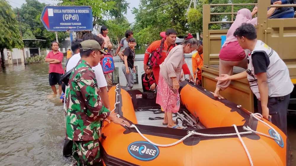 Petugas mengevakuasi warga terdampak banjir di Kota Semarang, Jawa Tengah pada Kamis, 14 Maret 2024.* (Foto: BPBD Kota Semarang)