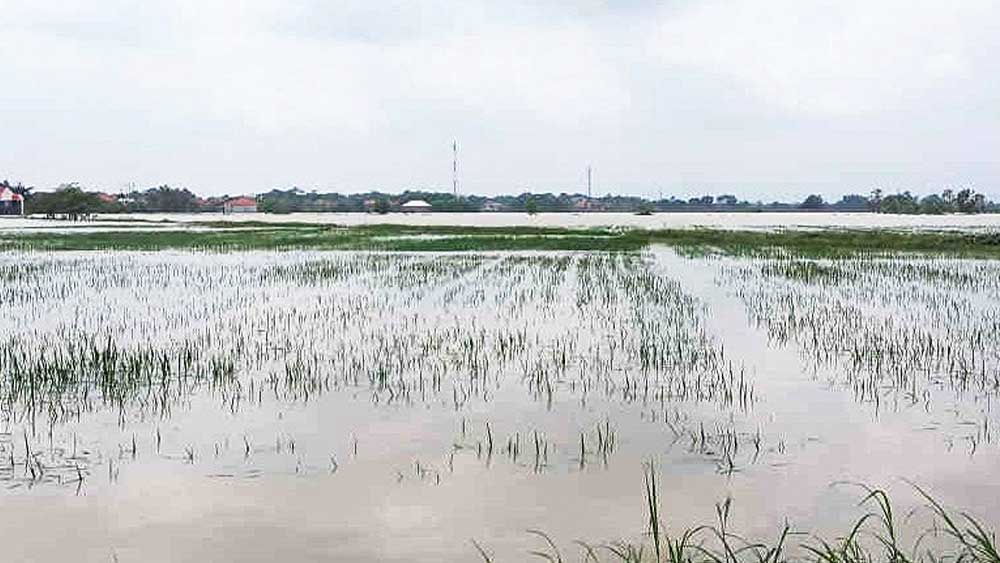 Hujan lebat selama beberapa hari telah merendam tanaman padi yang rata-rata baru berusia dua pekan.