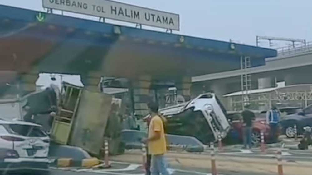 Dalam video yang beredar luas dan viral, terlihat suasana kacau di pintu GT Halim Utama. Terlihat kendaraan yang mengalami kecelakaan beruntun dalam posisi terguling.