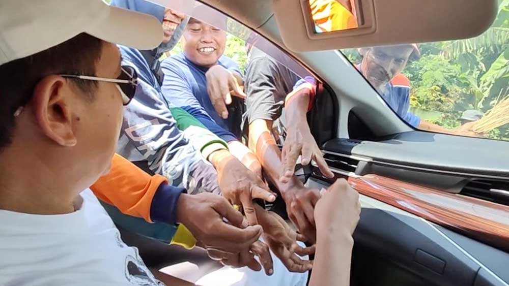 Tak lama KDM pun keluar dari mobil. Ia berbincang dengan sejumlah penyapu koin. Ternyata mereka sehari-hari memiliki pekerjaan sebagai buruh tani.
