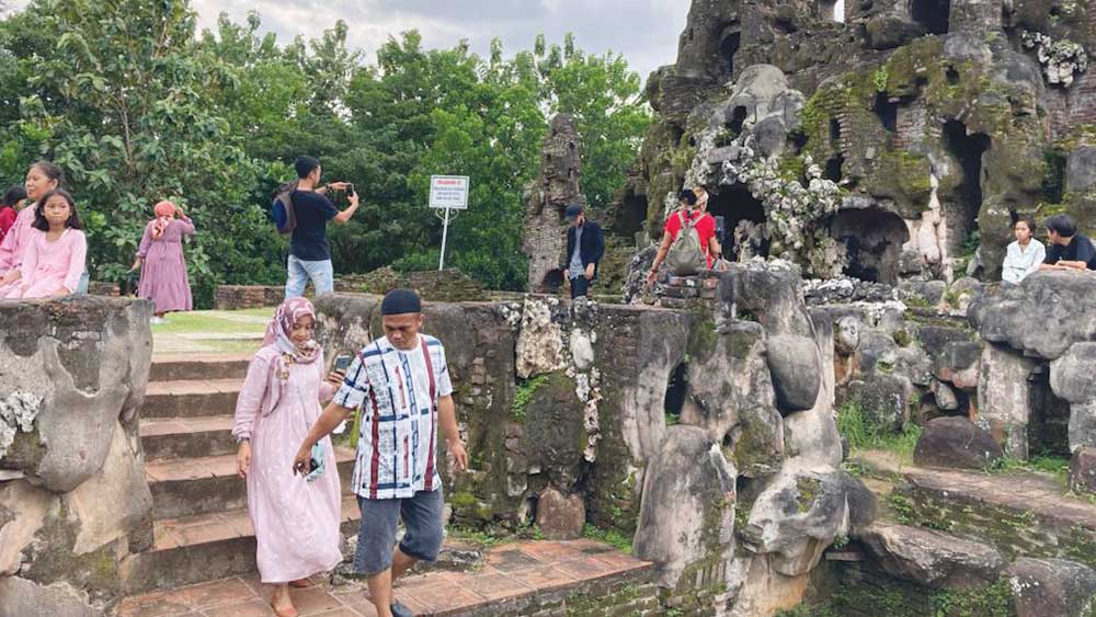 Pengunjung Taman Air Goa Sunyaragi Cirebon menikmati dapat keindahan bangunan bersejarah sambil berwisata.* (Foto: Surya/Dokumen/Suara Cirebon)