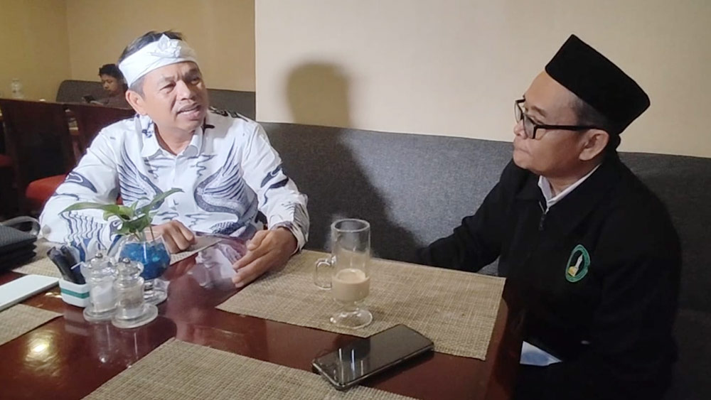 Kang Dedi Mulyadi (kiri) bersama Mahmudin (kanan), mantan Kepala Kantor Urusan Agama (KUA) Pasawahan membahas mahar emas palsu dalam sebuah pernikahan di Purwakarta.* (Foto: Istimewa)