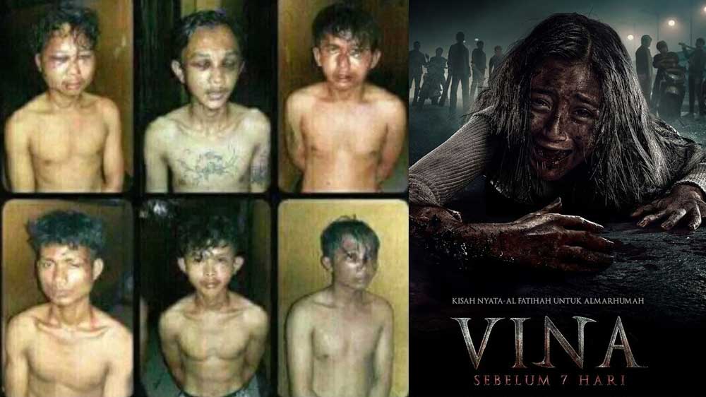Tampang pelaku pembunuhan sadis dan pemerkosaan Vina dan Eki, pada 27 Agustus 2016 lalu, tanpa 3 pelaku yang masih buron. Foto Kanan flayer Film Vina.*