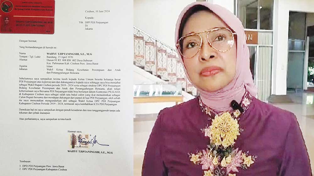 KOLASE FOTO: Surat pengunduran diri mantan Wakil Bupati Cirebon, Hj Wahyu Tjiptaningsih dari keanggotaan PDIP Selasa, 11 Juni 2024.* (Foto: Istimewa)