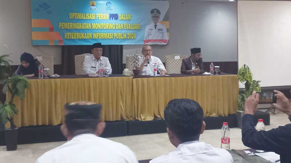 Sosialisasi optimalisasi peran PPID dalam pemerintahan, monitoring dan evaluasi keterbukaan informasi publik 2024, Rabu, 26 Juni 2024.* (Foto: Islah/Suara Cirebon)