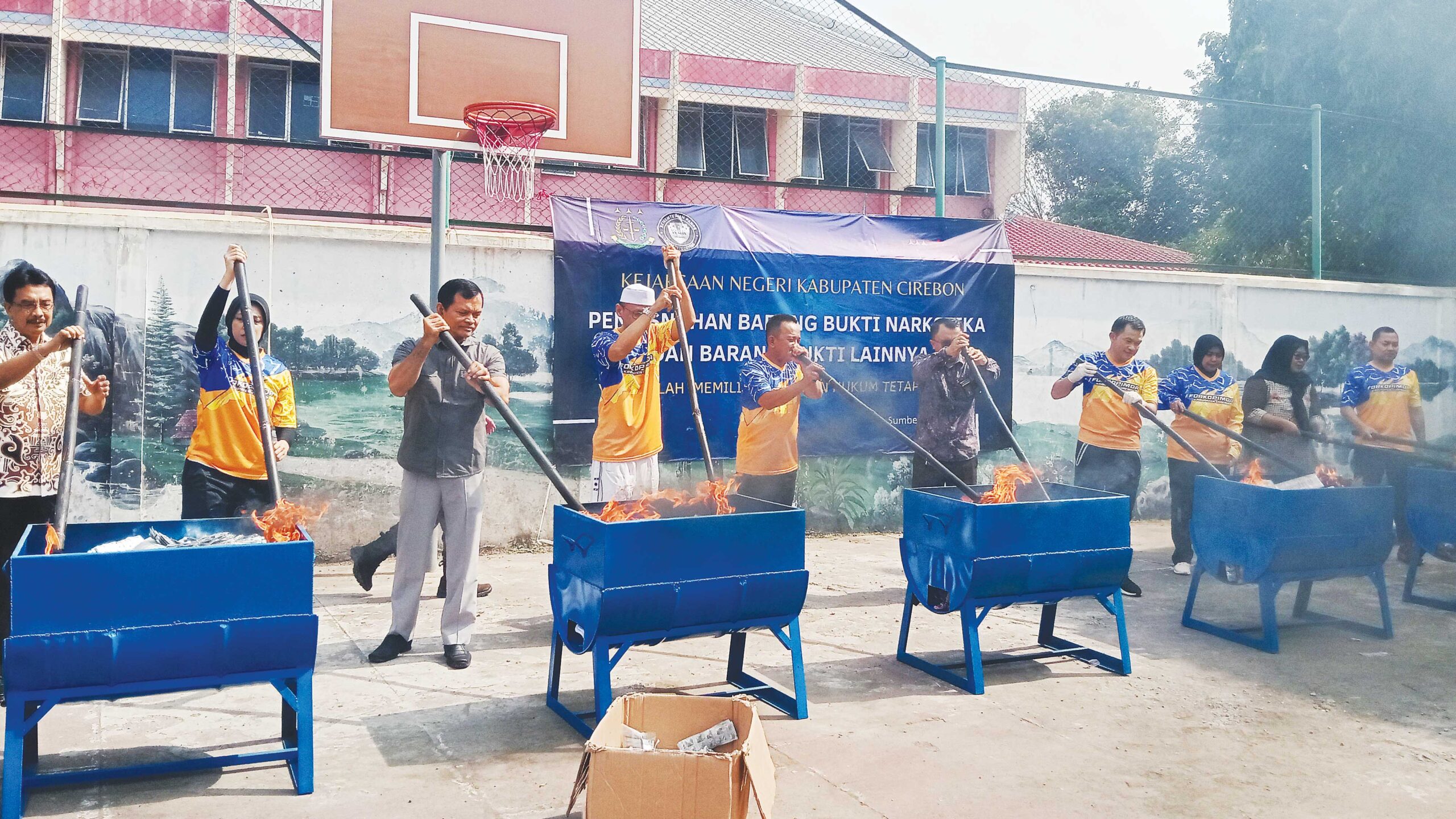 Pemusnahan BB tersebut, dilakukan secara bersama-sama oleh Forkopimda Kabupaten Cirebon dengan beragam cara, dari mulai diblender, dibakar hingga dipotong-potong dengan menggunakan mesin pemotong khusus, tergantung jenis barang bukti.