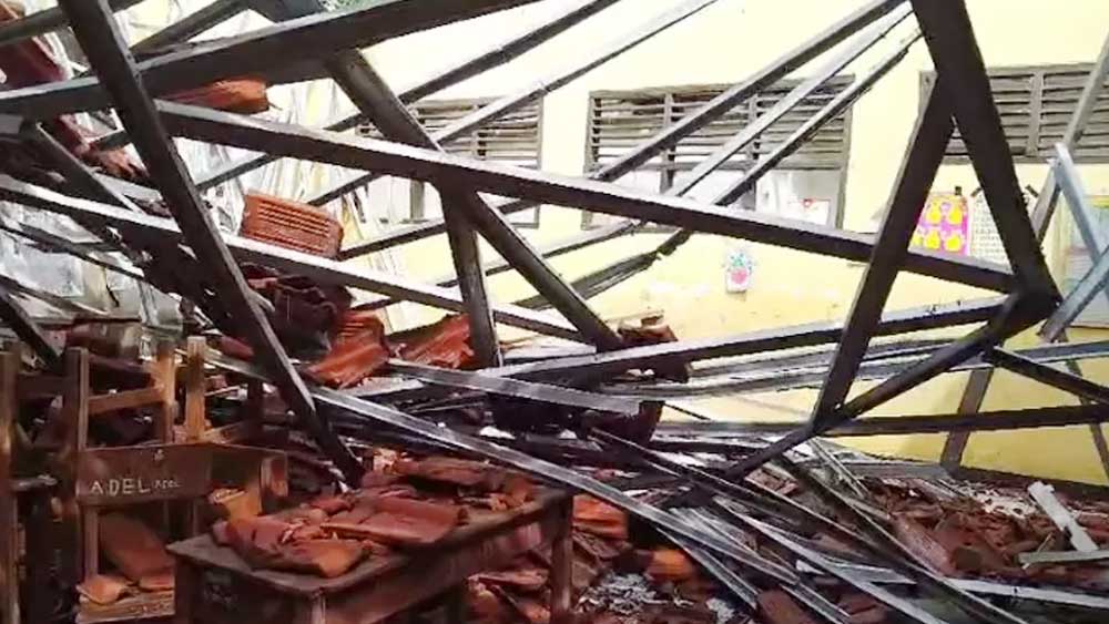 Konstruksi gedung yang dibangun pada tahun 2014 itu diduga tak kuat menahan curah hujan tinggi dan angin kencang.