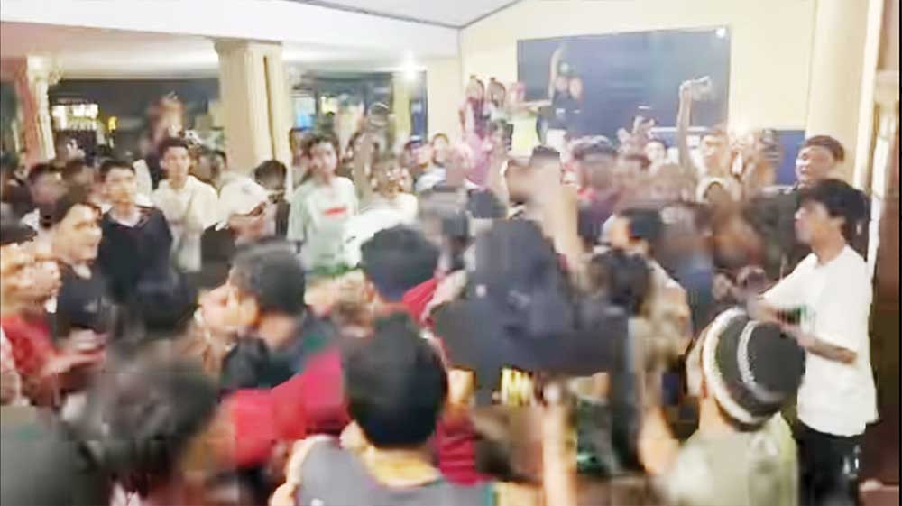 Tangkapan layar massa berupaya menghakini pelaku penjambretan HP yang dikenali korbannya di pasar malam Desa Lurah, Selasa, 9 Juli 2024 malam.* (Foto: Istimewa)
