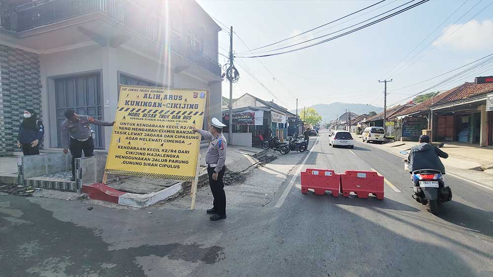“Untuk arus lalin, dialihkan melalui Cidulang, Cipulus, Gunung sirah, Darma. Untuk kendaraan besar, tidak bisa. hanya untuk mini bus, atau mobil-mobil kecil untuk angkutan barang tidak bisa melalui. Karena jalan tersebut cukup untuk mobil kecil,” jelas Ali.***