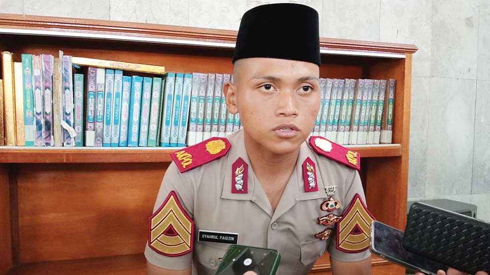 Taruna Akpol hafal Al-Qur'an 30 juz asal Kabupaten Cirebon, Brigdatar Syahrul Faidzin memberikan keterangan usai salat Jumat, 26 Juli 2024.* (Foto: Islah/Suara Cirebon)