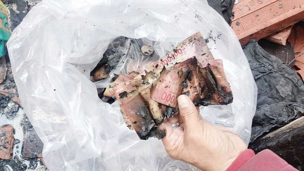 Uang yang tidak bisa diselamatkan pada kebakaran yang menghanguskan dua rumah, satu gudang limbah plastik dan satu kandang kambing di Desa Kaliwedi Lor, Selasa, 6 Agustus 2024.* (Foto: Istimewa)