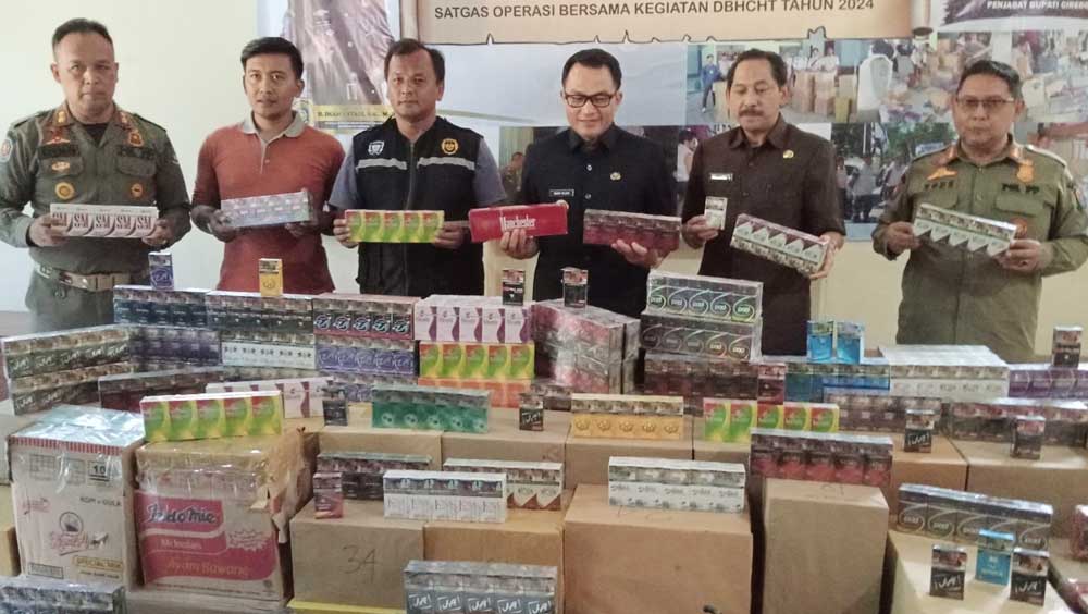 SUARA CIREBON – Petugas gabungan yang terdiri dari Satpol PP, TNI, Polri, Kejaksaan, dan Bea Cukai berhasil menyita ratusan ribu batang rokok ilegal dari sejumlah toko di 10 desa yang menjadi sasaran operasi rokok ilegal di Kabupaten Cirebon.