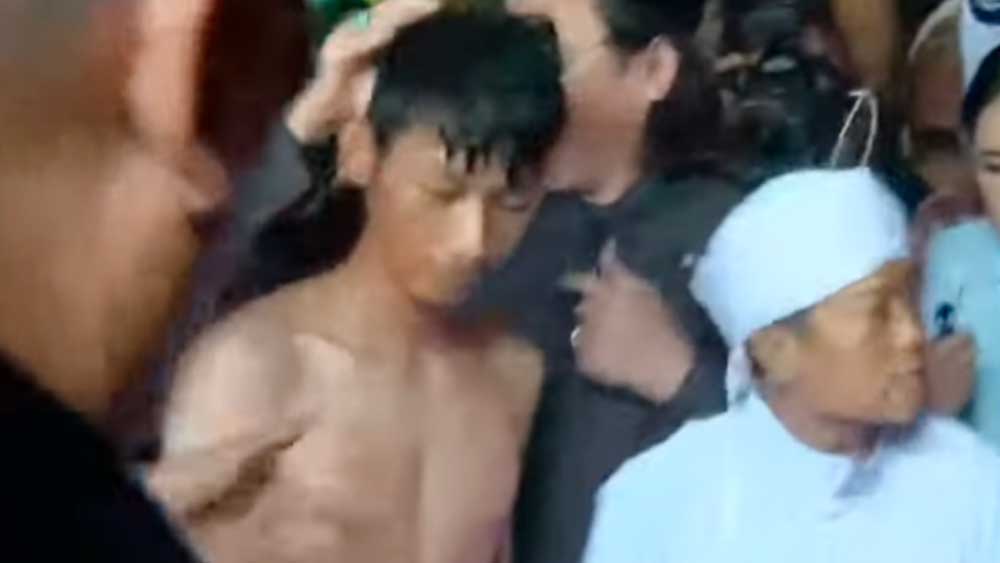 Saka Tatal menjalani prosesi sumpah pocong, Jumat, 9 Agustus 2024.*