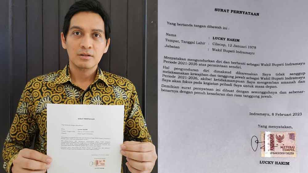 Beredarnya surat pengunduran diri Lucky Hakim kembali beredar luas dan viral setelah artis sinetron itu kini maju dalam Pilbup Indramayu sebagai cabup yang berpasangan dengan Syaefudin sebagai cawabup Indramayu.***