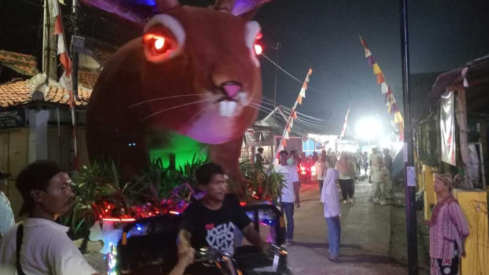 Selepas Isya, sesuai jadwal yang ditentukan, iring-iringan puluhan replika hewan pun dimulai. Ruas jalan yang menjadi rute kirab budaya tersebut langsung dipadati pengunjung yang datang tidak hanya dari desa setempat, tapi juga masyarakat dari berbagai desa di kecamatan sekitar Kecamatan Kaliwedi.