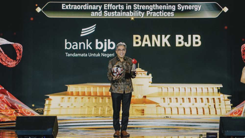 bank bjb dianugerahi penghargaan Extraordinary Efforts in Strengthening Synergy and Sustainability Practices, yang merupakan pengakuan atas usaha keras bank bjb dalam memperkuat sinergi dengan berbagai pihak dan mendukung keberlanjutan.