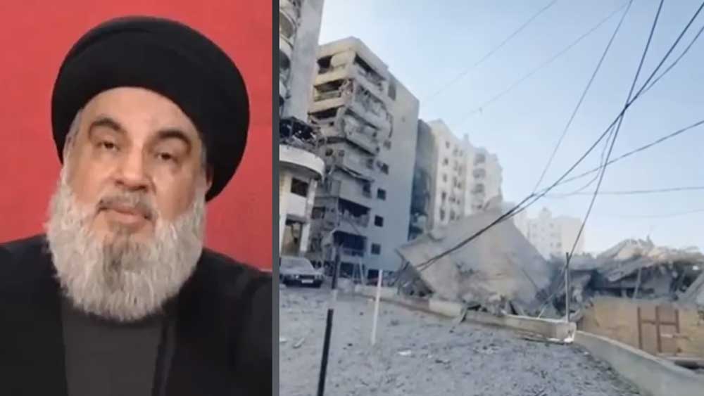 KOLASE FOTO: Pemimpin Hizbullah Hassan Nasrallah dan lokasi tewasnya dalam serangan udara Israel.*