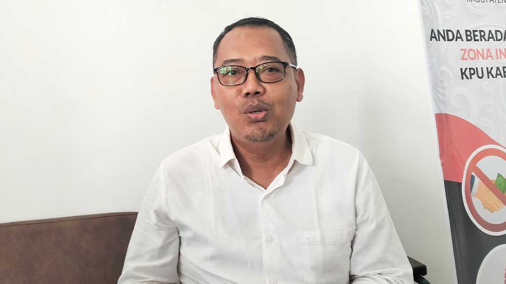 Ketua Divisi Teknis KPU Kabupaten Cirebon, Apendi menjelaskan dana kampanye para paslon, Senin, 28 Oktober 2024.* (Foto: Dede Kurniawan/Suara Cirebon)