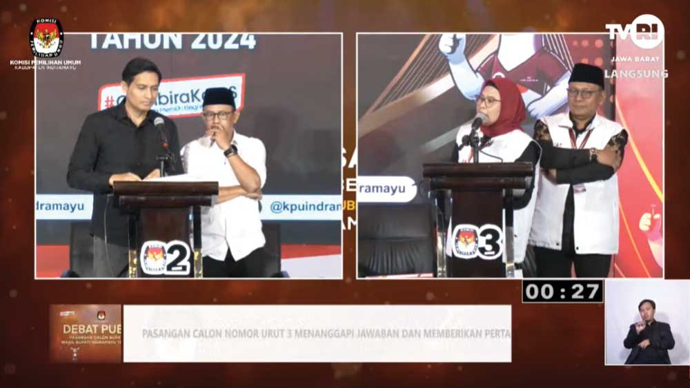 Serangan ke Nina Agustina disampaikan dalam Debat Publik Pemilihan Bupati atau Pilbup Indramayu, Senin malam, 4 November 2024.