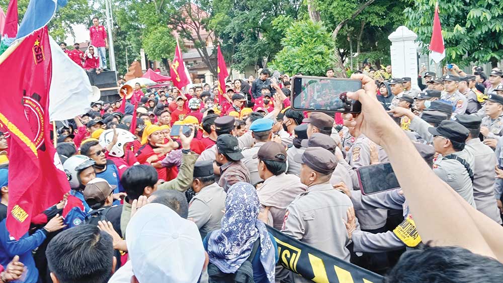 Benar saja, sesaat setelah koordinator aksi berhasil meredam massa, sejumlah perwakilan pengunjuk rasa dipersilakan masuk untuk melakukan audiensi.
