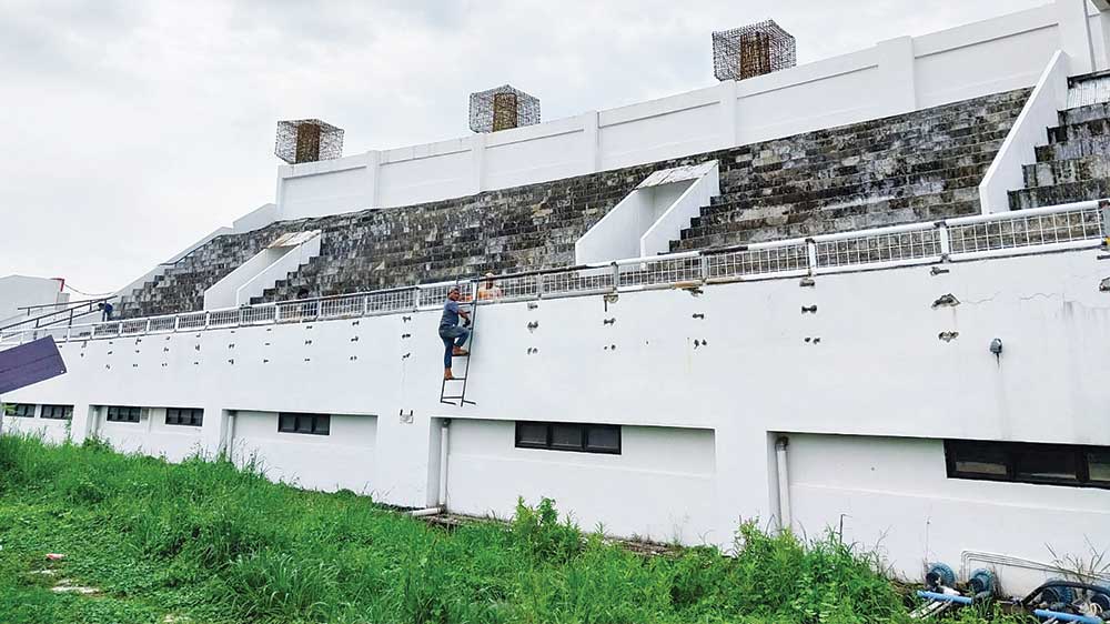 Pantauan di lapangan, pekerjaan pemagaran stadion tersebut menyisakan tiga tribun lagi. Pemagaran harus dilakukan untuk keamanan dan kenyamanan penonton. Sayangnya, pemagaran tiga tribun yang tersisa, belum bisa dipastikan bakal dikerjakan tahun depan.