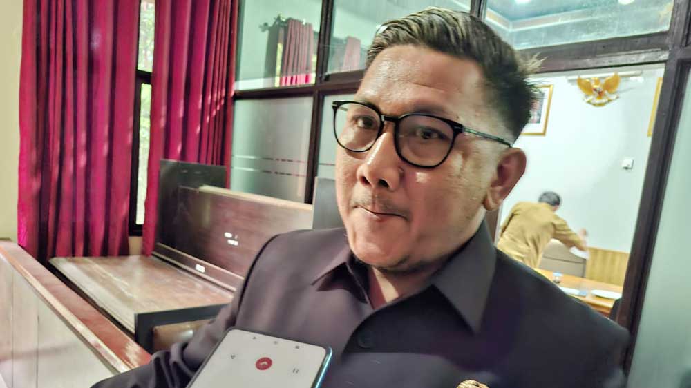 Ketua BK DPRD kabupaten Cirebon, H Yuki Eka Bastian bicara terkait kasus dugaan pelecehan seksual yang dilakukan anggota DPRD setempat berinisial MJ, Senin, 9 Desember 2024.* (Foto: Dede Kurniawan/Suara Cirebon)