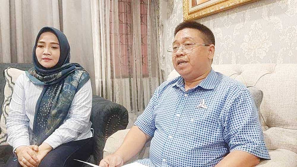Sekretaris DPD Partai Demokrat Jawa Barat, Handarujati Kalamullah, menanggapi kasus yang dituduhkan kepada anggota Fraksi Demokrat DPRD Kabupaten Cirebon MJ, Sabtu, 7 Desember 2024.* (Foto: Surya/Suara Cirebon)