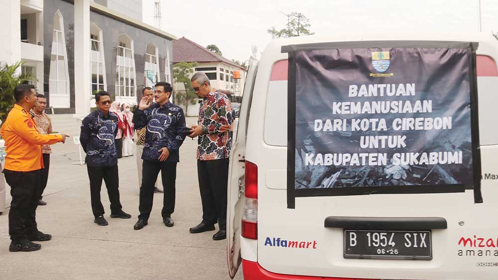 Turut hadir dalam pelepasan bantuan bagi korban bencana banjir dan longsor Sukabumi, Pj Sekretaris Daerah, Iing Daiman, Asisten Administrasi Umum, M Arif Kurniawan, Kepala Pelaksana Badan Penanggulangan Bencana Daerah (BPBD) Kota Cirebon, Andi Wibowo dan pejabat lainnya.***