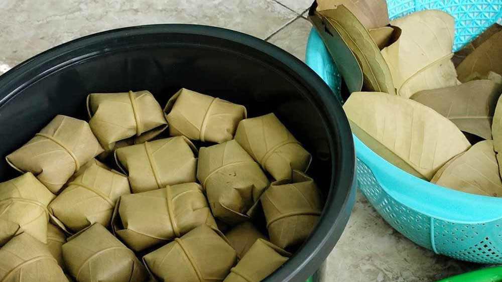 Ketan dibungkus dengan daun pisang dan difermentasi selama 2-3 hari hingga menghasilkan rasa manis dan sedikit asam.