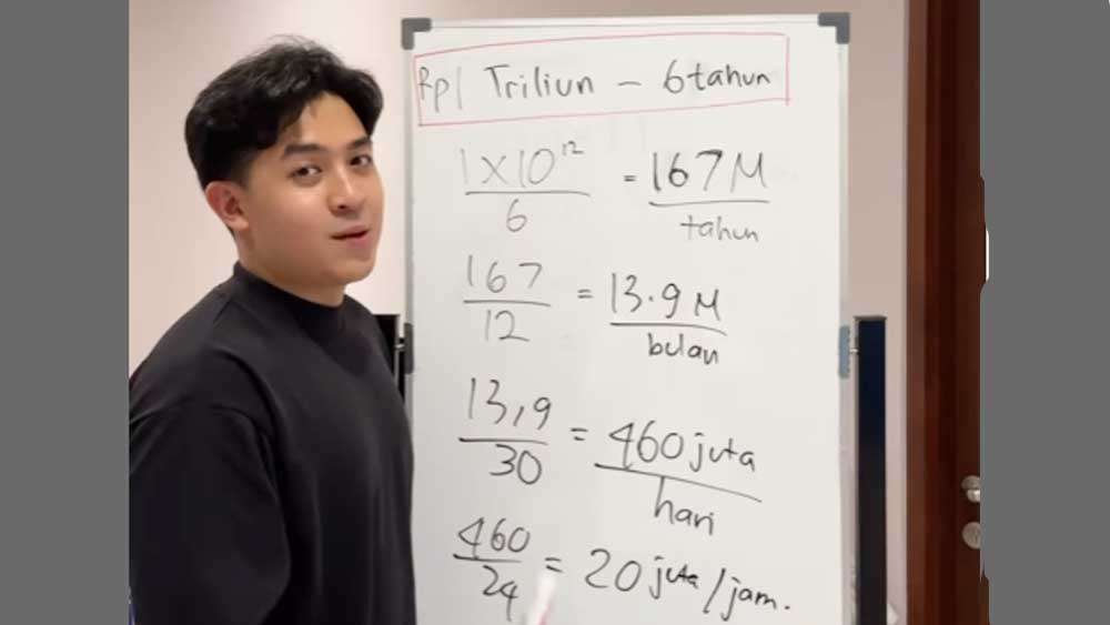 Kemudian Jerome pun membagi Rp 1 triliun dengan 6 tahun dan hasilnya mendatapan 167 miliar atau 13,9 miliar per bulan dan 460 juta per hari.