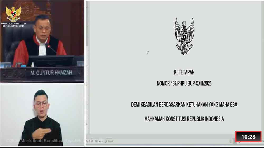 SUARA CIREBON – Mahkamah Konstitusi (MK) telah memutuskan menolak perkara Nomor 187/PHPU.BUP-XXIII/2025 mengenai Perselisihan Hasil Pemilihan Umum Kepala Daerah (PHPU Kada) Bupati dan Wakil Bupati Cirebon Tahun 2024.