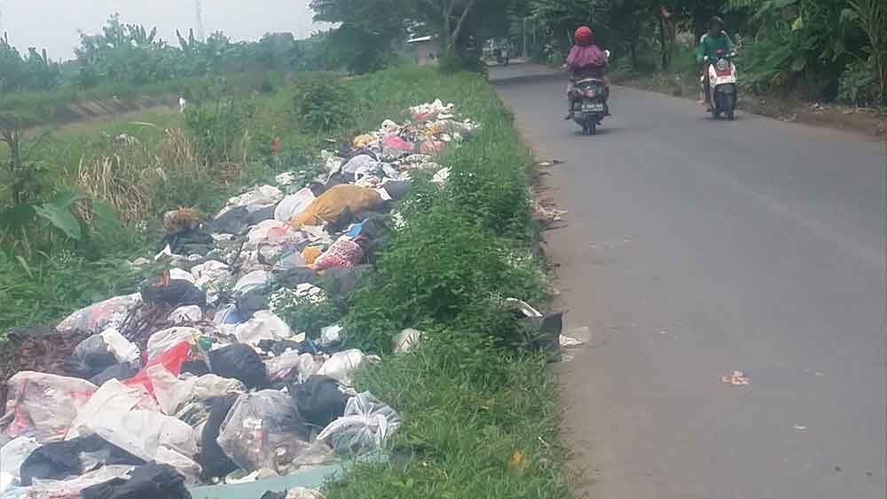 Sampah liar di pinggir jalan raya Ki Gesang Kaliwedi di Desa Prajawinangun Kulon.* (Foto: Islah/Dokumen/Suara Cirebon)
