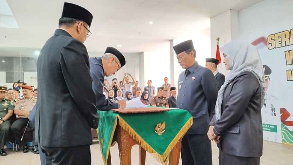 Pasca-dilantik sebagai Wali Kota dan Wakil Wali Kota Cirebon terpilih, Effendi Edo dan Siti Farida Rosmawati, Pemerintah Kota Cirebon menggelar serah terima jabatan dari Penjabat (Pj) Wali Kota Cirebon, Agus Mulyadi kepada dan Wali Kota dan Wakil Wali Kota Cirebon, yang berlangsung di Lobby Setda Kota Cirebon, Senin, 3 Maret 2025.