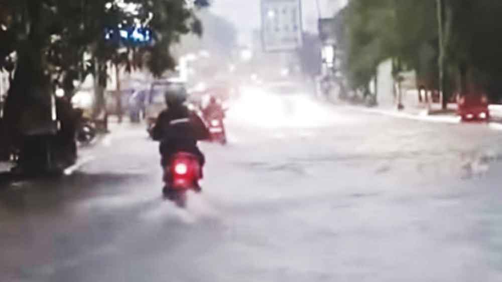 Tangkapan layar video rekaman banjir yang menggenangi Jalan Perumnas sekitar RS Putra Bahagia, saat hujan mengguyur Kota Cirebon, Sabtu, 15 Maret 2025 sore.*