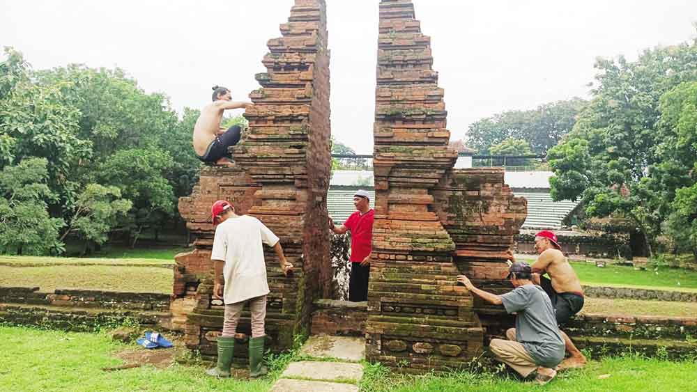 “Di bangunan situs, kami membersihkan lumut dan melumurkan tanah merah khusus yang didatangkan dari Keraton, yang digunakan untuk perbaikan bangunan bata merah. Untuk area lain, kami juga melakukan pembersihan batang dan ranting pohon serta melakukan perluasan lahan parkir,” ujar Eko Ardi, kemarin.