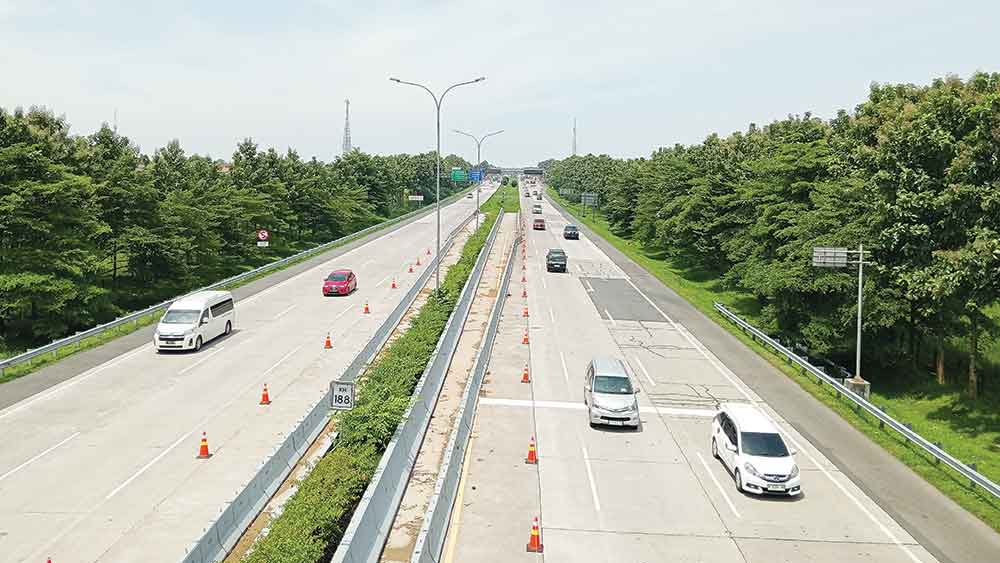 Tampak kendaraan menggunakan dua jalur saat melintasi Tol Cipali, seiring pemberlakukan one way pada arus balik Lebaran H+7, Senin, 7 April 2025.* (Foto: Islah/Suara Cirebon)