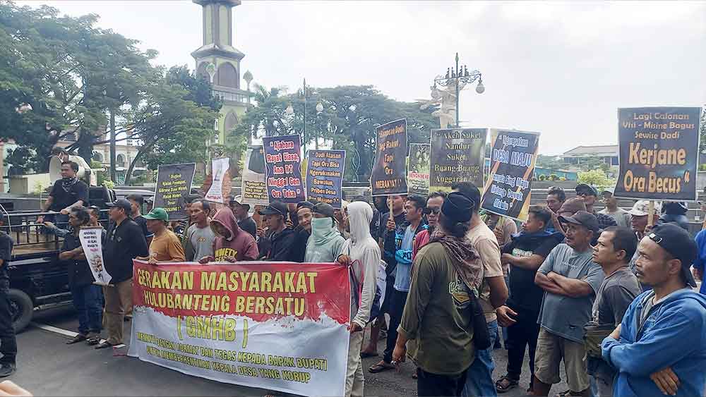 SUARA CIREBON – Puluhan warga Desa Hulubanteng, Kecamatan Pabuaran, menggeruduk Kantor Bupati Cirebon, mendesak Pemerintah Kabupaten (Pemkab) Cirebon mengusut tuntas dugaan pelanggaran hukum yang dilakukan kuwu berserta perangkat desa setempat, Kamis, 10 April 2025.