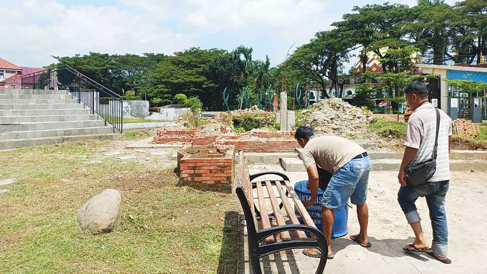 “Kamis insyaallah selesai. Intinya kami hanya merapihkan saja. Tapi, tidak mengubah bangunan yang ada, seperti tiang pondasi akan tetap dibiarkan,” paparnya.
