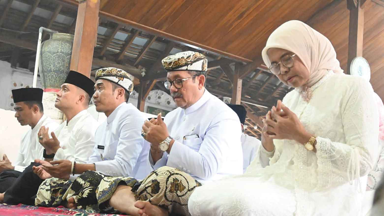 Bupati Cirebon, H Imron, Wakil Bupati, H Agus Kurniawan Budiman, Forkopimda plus doa bersama di Kompleks Makam Sunan Gunungjati, Kamis, 17 April 2025.* (Foto: Islah/Suara Cirebon)