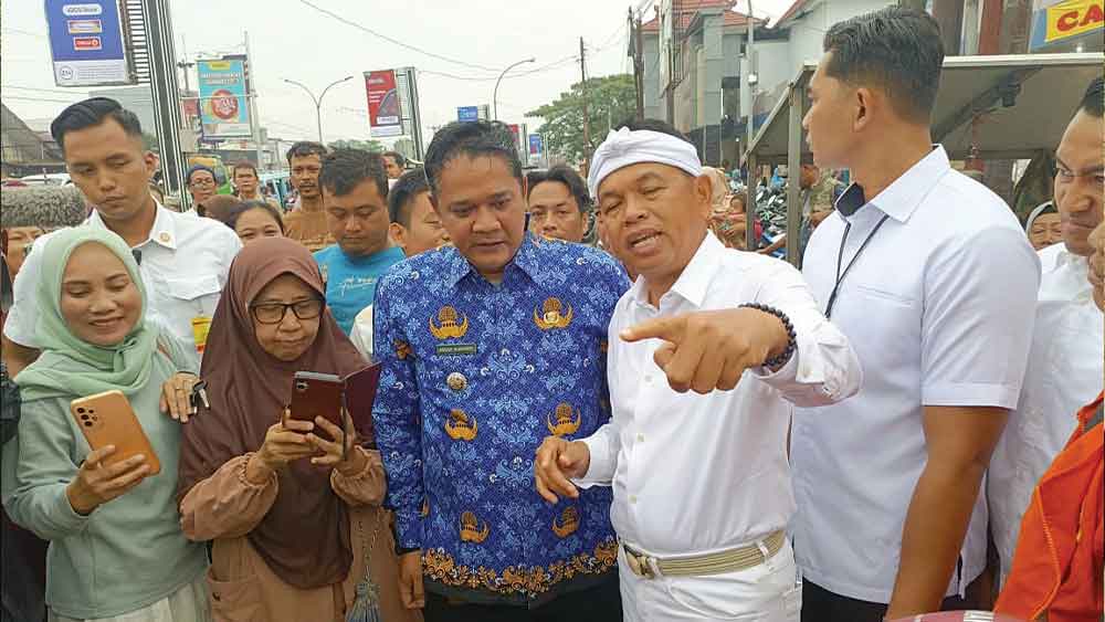 Gubernur Jawa Barat, Dedi Mulyadi didampingi Camat Weru, Hevazi Aldahary, saat melakukan inspeksi mendadak ke Pasar Pasalaran, Senin, 2 Juni 2025.* (Foto: Vicky/Suara Cirebon)