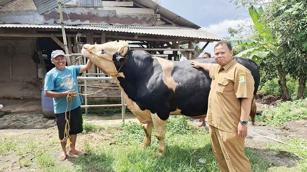 Doser sapi berbobot lebih dari 1,1 ton milik Kusnan, warga Desa Cikancas, Kecamatan Beber, Kabupaten Cirebon, yang dibeli Presiden Prabowo sebagai hewan kurban di Masjid Agung Sumber.* (Foto: Istimewa)