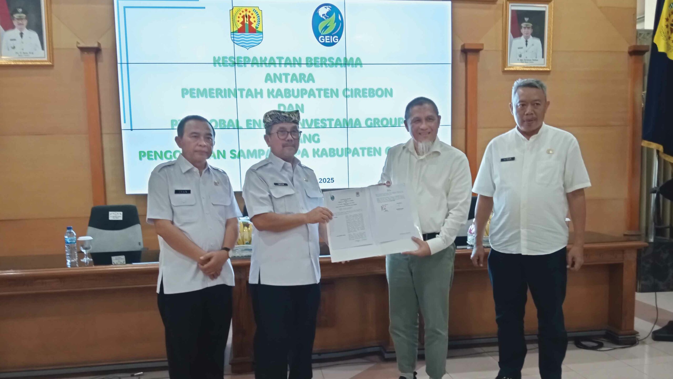 Penandatangan kerja sama pengolahan sampah antara Pemkab Cirebon dengan PT Global Energi Investama Group, Rabu, 16 Juli 2025.* (Foto: Islah/Suara Cirebon)