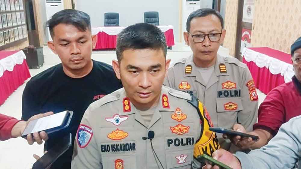Kapolres Cirebon Kota, AKBP Eko Iskandar menyampaikan kronologi tawuran konten antar gengster yang mengakibatkan satu pemuda tewas, Selasa, 19 Agustus 2025.* (Foto: Surya/Suara Cirebon)