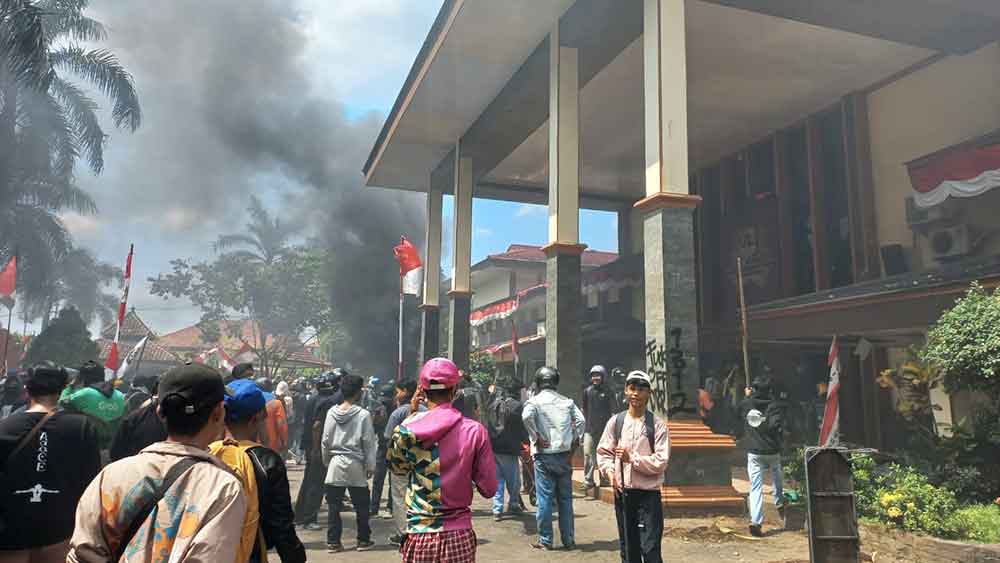 Bukan hanya merusak fasilitas yang ada, massa juga membakar kantor DPRD dan merangsek masuk ke dalam gedung kemudian menjarah barang-barang yang ada di dalamnya.